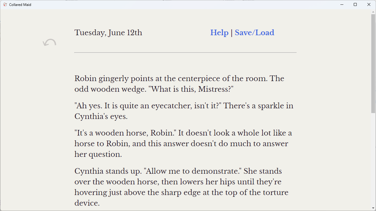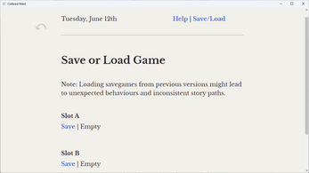 I have been working on this game for almost two years, and it currently sits at about 50,000 words. The story is not finished yet and I will update whenever my job situation allows. The game is intended to ultimately have at least two major endings, with plenty of minor variations and side chapters along the way. Your feedback would be invaluable to me.